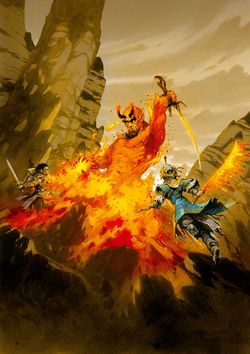 L’Efrit auquel Sanya et Asriel s’attaquaient, sentant le vent tourner, décida de passer en forme gazeuse et de s’enfuir. Sanya fut prise d’un une pluie de cendres et de gaz et perdit de vue l’Efrit. La jeune fille s’échappa pour rejoindre le paladin qui s’attaqua alors au drake des sables.