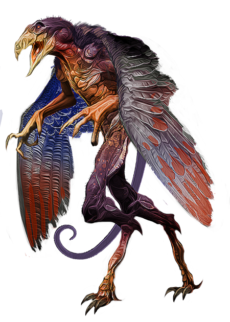 Radoki les identifia d’ailleurs comme des Vrocks, horrible croisement démoniaque entre un homme et un vautour gigantesque.