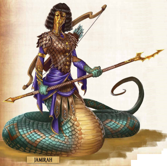 Sur la rampe apparue alors une terrible créature. Jamirah, une matriarche lamia, mi humaine mi ophidienne, mettant à mal Heckmet qui tomba dans l’inconscience sous sa déferlante de flèches. Elle saisit alors son effroyable lance pour infliger d’incroyables dégâts à Asriel, qui luttait déjà contre une lamia, ainsi qu’à Radoki qui s’effondra.