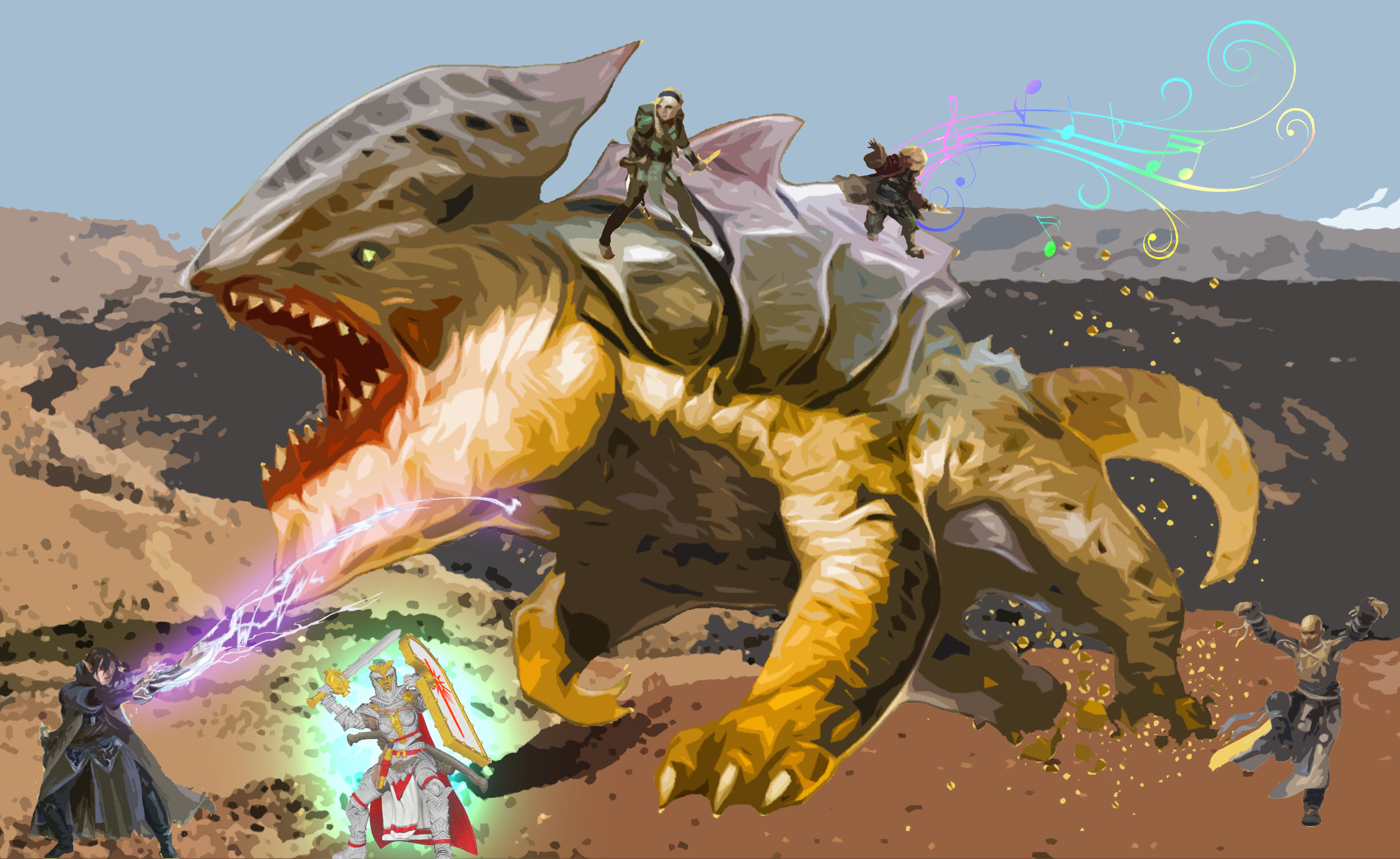 Asriel dût utiliser son défi du héros pour rester en vie tant la bulette était déchaînée… Avec Sen ils firent beaucoup d’efforts pour lui briser une patte pendant que Radoki chantait des chants héroïques qui déstabilisaient la créature et nous encoureageaient !