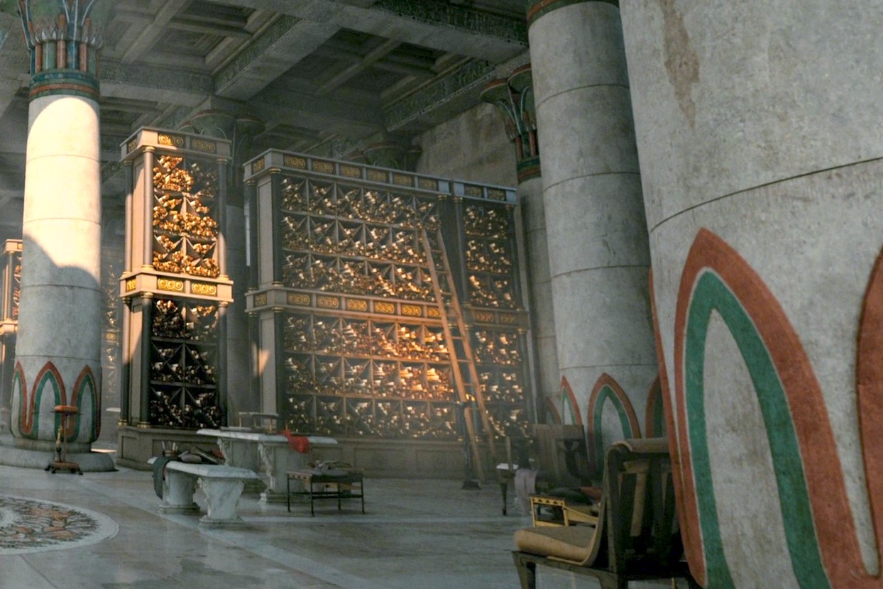 Ils apprennent aussi que là où est enterré l’architecte Chisisek est un lieu où se trouve une rotonde où on peut trouver une fresque qui dépeint sa vie, dans ce même caveau ! Sanya découvre que le plafond n’est pas d’origine, donc Asriel entreprend de le détruire à l’aide de son fléau sous le regard de Radoki.